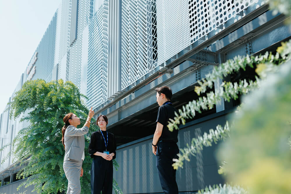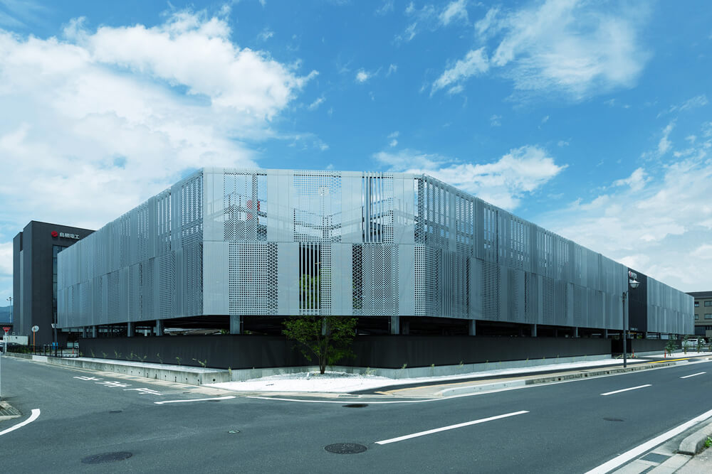 本来なら立体駐車場のような特殊な建造物には専用のメーカーがあるので、そこにすべてを依頼することもできたのですが、この立体駐車場を表側の通りから見たとき、本社前面に位置するため、社屋を完全に隠す状態になってしまう。つまり、本社の顔ともいうべき位置に立体駐車場が来ることになる。島根電工の顔となり得るような場所に、ありふれた立体駐車場があったのでは、世間的なイメージとしても思わしくないのでは?と思ったんですね。