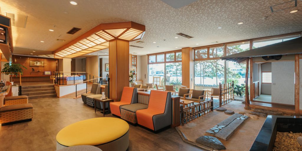 改修ポイントは、昭和45年築の鉄筋コンクリート造6階建て本館の4、5、6階の客室と、2階・3階宴会場、そして鉄筋コンクリート造5階建て新館ロビー部分の3つ。