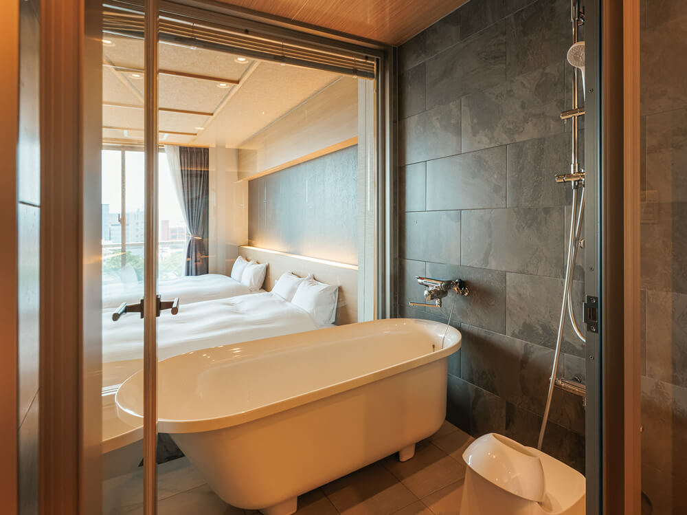 まず、客室については、各フロア5部屋から4部屋に減らすことで、それぞれの部屋にこれまで以上のゆとりを確保し、さらに全室のバリアフリー化を実現しました。